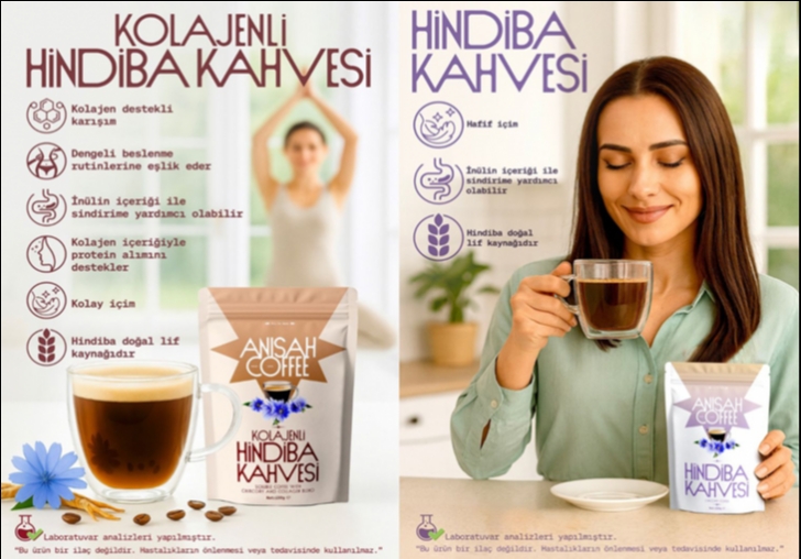 Anisah Hindiba Kahvesi; %72 çözünebilir hindiba kökü tozu ve %25 çözünebilir kahve içerir. Hindiba kahvesi 1 tatlı kaşığı ile hazırlanır; vanilya aromasıyla dengeli içim sunar.